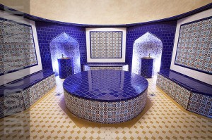 Если рассматривать с точки зрения простого обывателя, то Турецкая баня отчасти напоминает нашу парную баню или сауну, но у нее есть свои колоритные особенности и отличия. Возникнув на основе Римских Терм, Хамам взял все лучшее от древних римлян, которые знали толк в удовольствиях. С течением веков Турецкие бани видоизменялись и модернизировались, постепенно обретая свою философию и ритуалы. Это красноречиво говорит о важности процедуры очищения для жителей средневековой Турции. Однако, несмотря на все изменения, Хамам и сегодня сохраняет свои особенности и неповторимую атмосферу роскоши и комфорта. Ведь именно этими качествами всегда славился Древний Восток. Все элементы сделаны из камня, включая лежаки, название которых - "чебек-таши" (камень для живота) - разогретые каменные лежаки в центральном помещении турецкой бани. На них профессиональные массажисты делают посетителям пилинг тела мочалкой, мыльный и масляный массажи.